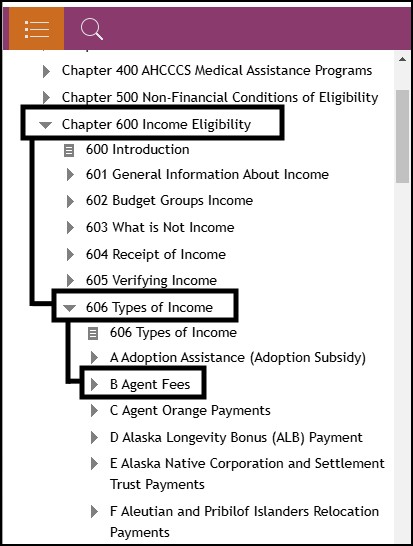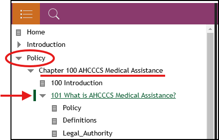 Example: To get to “Chapter 101 - What is AHCCCS Medical Assistance?” you would need to: